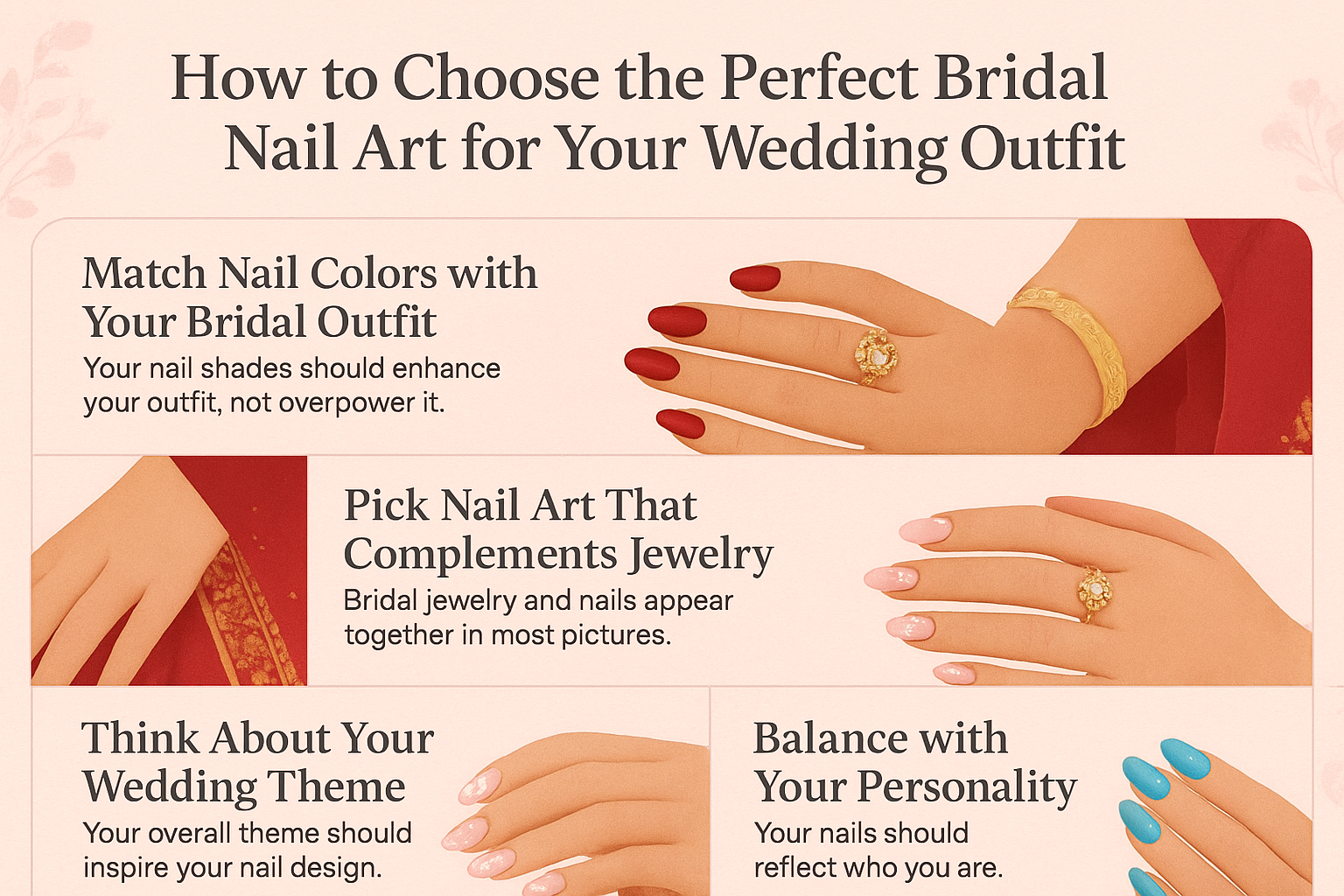Your wedding day is all about details — from your bridal lehenga or gown to your hairstyle and jewelry. But one detail brides often overlook is their nail art design. Since your hands will be in focus for ring exchanges, photos, and rituals, your nails should perfectly complement your outfit.